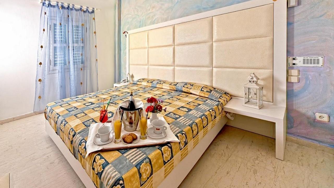 Всички стаи осигуряват комфортно настаняване с отделна спалня, всекидневна и напълно оборудван кухненски бокс. Другите удобства са климатик, плазмен телевизор и сешоар. Всички стаи имат собствен балкон с изглед или към морето, или към басейна, или към древна Тира.